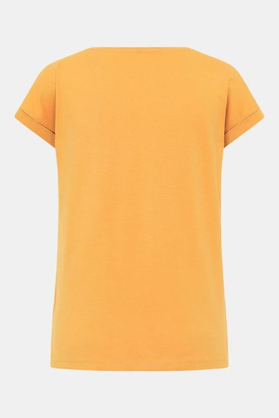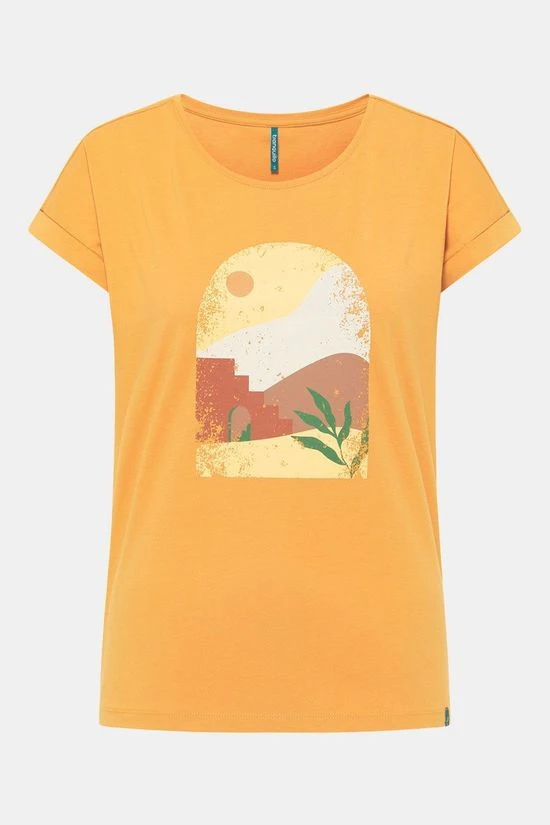 - Het zomerse Aus Biobamwolle dames T-shirt van Tranquillo heeft een ronde hals en een tropische print aan de voorkant