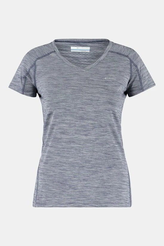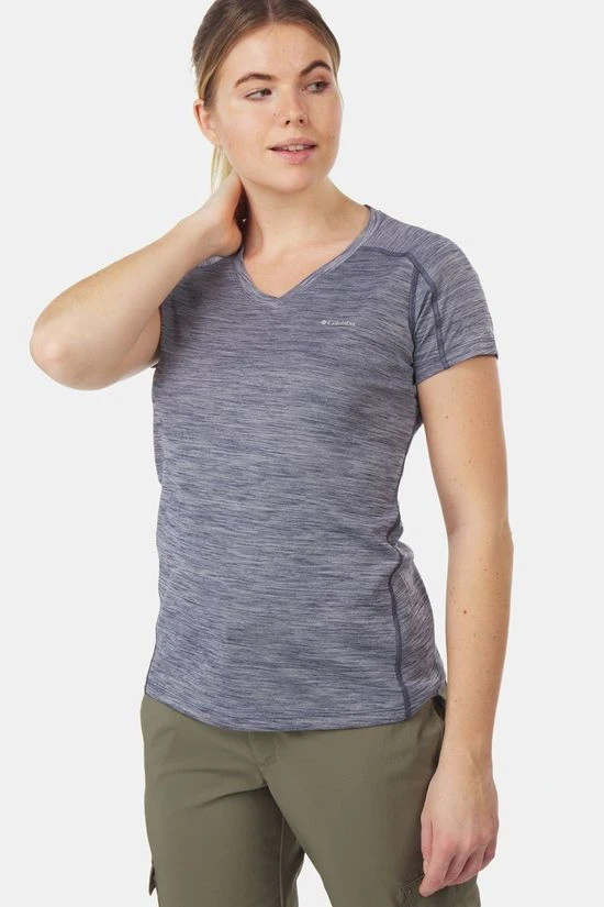 Het Zero Rules T-Shirt van Columbia is een superkoelend technisch shirt met stretch en zonnebescherming voor dames. Ervaar het comfort door de Omni-Freeze technologie in de stof dat één van de meest geavanceerde koelingstechnieken op de markt is. De stof reageert met je zweet om de temperatuur van het materiaal te laten zakken en je koel te houden tijdens dynamische activiteiten in de hitte.