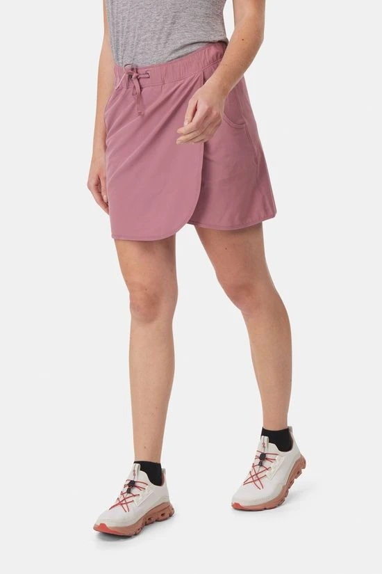 De buitenrok van de Fleetwith is behandeld met een DWR (duurzame waterafstotende) afwerking en is super-elastisch, kreukvrij en sneldrogend. Dankzij de taillezoom met trekkoord aan de buitenkant is de pasvorm verstelbaar. De skort is uitgerust met twee steekzakken met rits aan de voorzijde en een verborgen binnenzak. De rok heeft een zoom die tot boven de knie valt.
