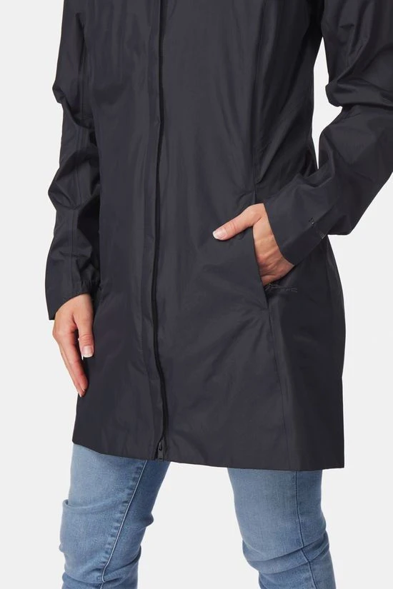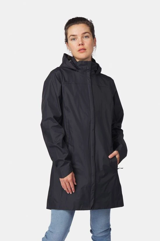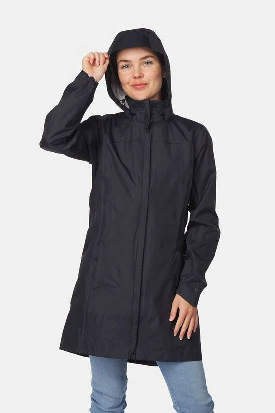 - Weerbestendige details zijn onder meer een in twee richtingen verstelbare capuchon, een doorlopende knoopsluiting, compleet met een tweewegritssluiting en stormflap.